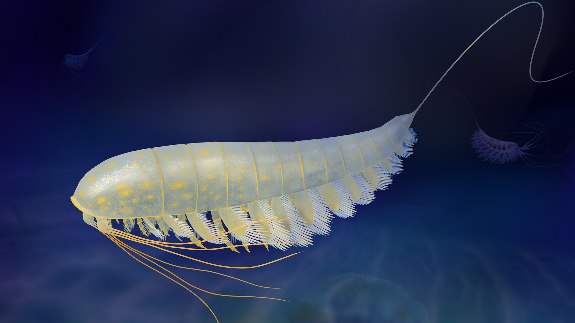 | An illustration of Lomankus edgecombei. This arthropod lived about 538 to 485 million years ago in dark and low-oxygen environments. Xiaodong Wang |